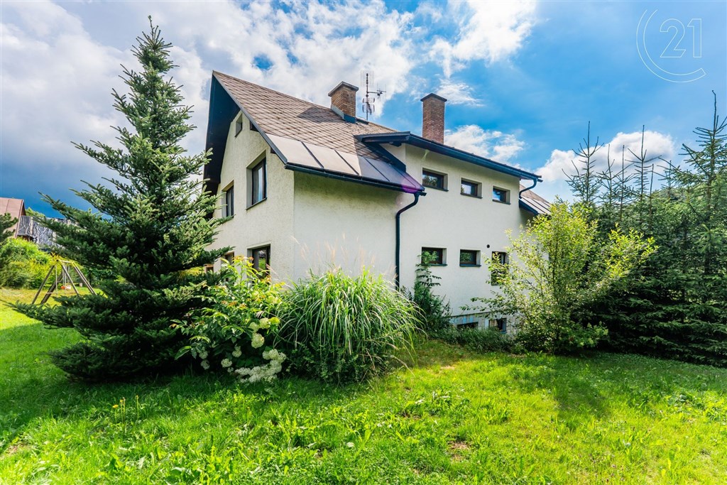 Uvažujete o životě v zeleni, daleko od ruchu města, kde se každé ráno probouzíte do ticha a vůně lesa? Cítíte, že nastal čas zpomalit a žít jinak - ve vlastním domě obklopeném přírodou, s dostatkem prostoru pro rodinu, relaxaci i případné podnikání? V tom případě vás zaujme nabídka rodinného domu v obci Roprachtice, která leží v malebné krajině Krkonošského podhůří, pouhých 15 minut od Jilemnice a necelou půlhodinu od Semil. Nabízený dům se nachází na klidném místě v zástavbě rodinných domů a nabízí výjimečný prostor - jak v interiéru, tak na přilehlém pozemku o rozloze 2 354 m2. Dům je samostatně stojící, kompletně podsklepený, se dvěma nadzemními podlažími, sedlovou střechou a lodžiemi s výhledem do krajiny. V každém podlaží najdete vlastní obytné zázemí včetně kuchyně, koupelny a WC, což z domu činí ideální příležitost pro dvougenerační bydlení, kombinaci bydlení a pronájmu, nebo menší rodinný penzion. Dům byl postaven v roce 1981 a v posledních letech prošel částečnou rekonstrukcí - vyměněna byla okna a zmodernizovány interiéry. Najdete zde mimo jiné dvě kuchyně, dvě koupelny, tři toalety, prostorné obytné místnosti i technické zázemí v podsklepení - včetně kotelny, skladů, prádelny a garáže. Vytápění je řešeno ústředním systémem s kotlem na tuhá paliva, ohřev vody zajišťují dva elektrické bojlery. Na pozemku se nachází altán, venkovní zapuštěný bazén a dostatek prostoru pro zahradu, rekreační zónu nebo drobnou hospodářskou činnost. Dům je napojen na elektřinu a vodovod, odpad je sveden do septiku. Přístup je zajištěn po zpevněné komunikaci. Jedná se o nemovitost s obrovským potenciálem - ať už hledáte trvalé bydlení, rekreační zázemí, investici do pronájmu nebo místo, kde spojíte domov s podnikáním. Pokud hledáte prostor, svobodu, přírodu a zároveň praktický dům s duší a historií, může být tato nabídka přesně pro vás.