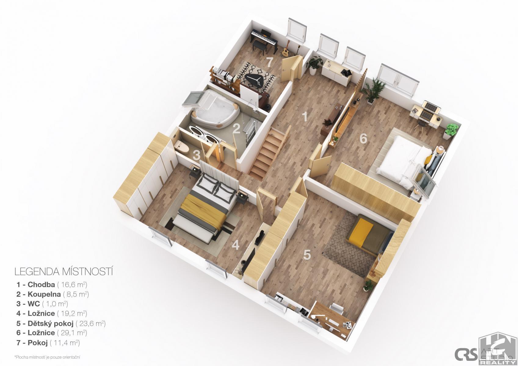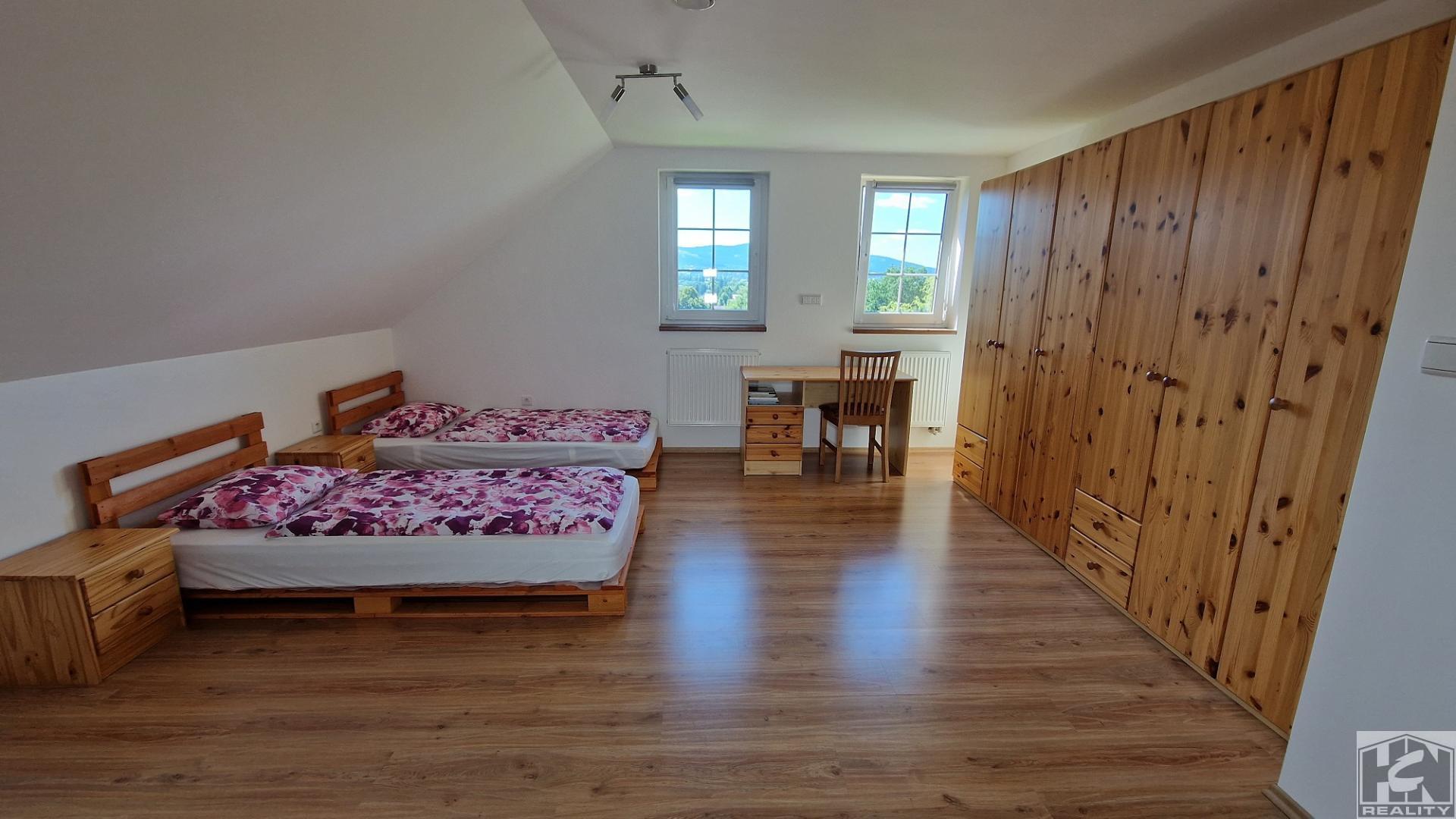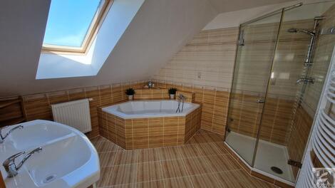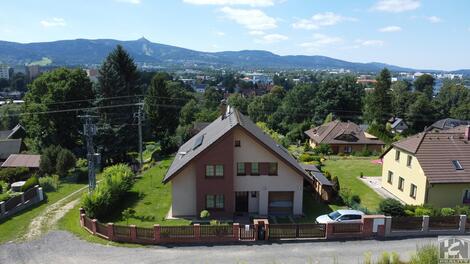 Nabízíme ke koupi rodinný dům 7+kk s garáží 213m2 v klidné městské části Vesec - Liberec, ul. Na Veseckém kopci. V 1.NP se nachází prostorný obývací pokoj s krbem , jídelnou a kuchyňským koutem s vestavěnými spotřebiči, pracovna, pokoj pro hosty, koupelna se sprchovým koutem a WC, předsíň se šatnou, vstupní hala a dřevěné dubové schodiště do patra. Na obývací prostor navazuje zastřešená terasa, která je propojená se zahradou. Prostorná garáž s technickým zázemím (18m2) s vraty na dálkové ovládání je přístupná ze vstupní haly a zahrady. V 2.NP se nacházejí 4 pokoje, prostorná chodba koupelna s vanou a sprchovým koutem, samostatné WC. Z chodby je vstup po výsuvném schodišti na půdu. Pozemek má celkovou rozlohu 873m2. Zastavěná plocha 143m2. Podlahová plocha domu s terasou 195m2 + garáž 18m2+ terasa 9m2. Dům je napojen na městský vodovod, veřejnou kanalizaci a elektřinu. V celém domě je ústřední topení s elektrickým kotlem, podlahové topení je v obyvacím pokoji s kuchyní, chodbě a koupelně v přízemí. Krb má vyvedeny teplovzdušné rozvody do 2.NP. Teplá voda je ohřívaná solárním systémem. Okna v domě v každé obytné místnosti mají vnitřní stínící rolety a venkovní elektrické hliníkové rolety. Fasáda domu je částečně obložena červenými cihelnými pásky. Energetický průkaz PENB třida: F. Městská část Vesec u Liberce má kompletní občanskou vybavenost včetně MHD Liberec. Dům svým umístěním zajišťuje klidné bydlení s výhledem na Ještěd, výbornou dostupnost do centra Liberce a na rychlostní komunikaci do Prahy. V docházkové blízkosti sportovní areál Vesec, cyklostezky, lyžařský areál Ještěd a lyžařský areál Obři sud. S financováním Vám rádi poradíme. <a href="https://www.eurobydleni.cz/pozemky/stavebni-pozemek-bydleni/melnik/obec-kralupy-nad-vltavou/prodej/"><strong>Prodej stavebního pozemku Kralupy nad Vltavou</strong></a>