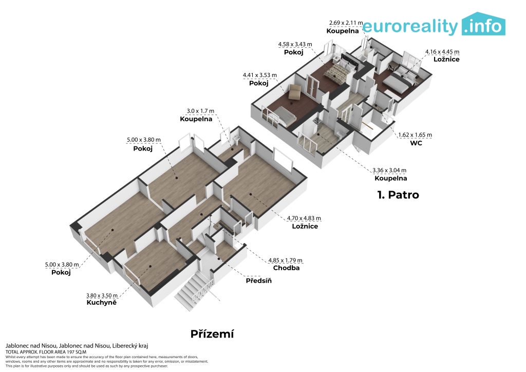 Prodej vily / rodinného domu - centrum Jablonce nad Nisou, ul. Podskalí Nabízíme k prodeji prostorný rodinný dům ve vyhledávané lokalitě centra Jablonce nad Nisou, ulice Podskalí. Nemovitost představuje atraktivní příležitost pro vícegenerační bydlení, bydlení větší rodiny nebo jako spojení podnikání a bydlení v jedné budově. Dům je určen k celkové rekonstrukci, umožňuje však široké možnosti úprav a rozšíření. Dispozice a možnosti využití: V domě se nachází dvě samostatné bytové jednotky 3+1: Přízemí - 3+1, 88,5 m2 Patro - 3+1, 88 m2 Možnost vybudovat třetí bytovou jednotku v suterénu ( 47 m2), případně využít tento prostor jako nebytový - ordinace, kancelář, studio apod. Byt v patře je možné rozšířit do půdního prostoru a vytvořit tak prostorný mezonet. Každá bytová jednotka má samostatné měření elektřiny. Oba byty disponují kuchyní, koupelnou a samostatným WC. Technické informace: Vytápění: Přízemní byt - plynový kotel Byt v patře - elektrické topení (nyní odpojeno) Dům je napojen na veřejný vodovod, kanalizaci, elektřinu i plyn. V roce 2022 vybudována nová vodovodní přípojka a nedávno byly vybudovány nové přívody elektrické energie Zastavěná plocha: 132 m2 Celková obytná plocha: cca 218 m2 Součástí je také menší pozemek za domem. Lokalita: Výjimečná poloha v docházkové vzdálenosti do centra města - pouze 5 minut chůze. Kompletní občanská vybavenost v bezprostředním okolí (školy, obchody, MHD, služby). Parkování je možné přímo před domem. Vhodné využití: vícegenerační bydlení bydlení spojené s podnikáním investiční projekt se třemi bytovými jednotkami zázemí pro ordinaci, kanceláře či služby Nemovitost nabízí mimořádný potenciál a variabilitu využití v žádané části Jablonce nad Nisou. Na vyžádání zašleme původní dokumentaci. Pro více informací nebo sjednání termínu prohlídky kontaktujte makléře.