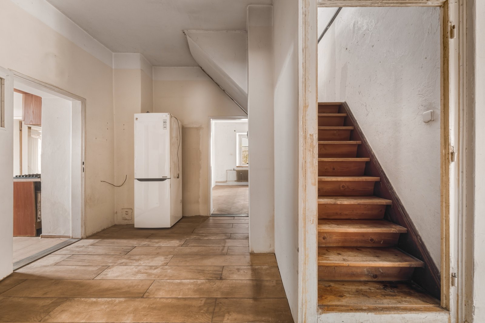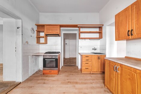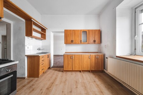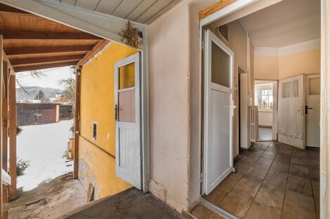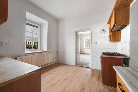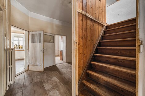 Nabízíme k prodeji velkorysý rodinný dům v atraktivní lokalitě Českolipska a Kokořínska v obci Deštná u Dubé. Dům je velmi dobře dispozičně řešen, v přízemí se po vstupu do prostorné chodby vstupuje paprskovitě do koupelny s vanou vlevo, WC odděleno, dále vlevo do světlého obývacího pokoje, (okna do dvou světových stran), dále do kuchyně, která je spojovacími dveřmi spojena s navazujícím pokojem. Dále pak vpravo je vstup do menšího pokoje (pracovny), eventuálně dětského pokoje. V centrální části chodby je vchod do spíže (šatny). Celková obytná plocha přízemí je 129 m2, dispozičně 3+1/4+kk. První patro o celkové výměře 134 m2 sestává z koupelny společné s WC, dále dva na sebe navazující pokoje, rozměrný obývací pokoj s kuchyňským koutem a další pokoj. Dispozičně budoucí 4+kk. Dům je ve fázi zahájené rekonstrukce, viz. fotografie, zásadní položky jsou již dokončeny. K domu náleží pozemek, zahrada o celkové výměře 2 174 m2. Na pozemku se nachází stodola a další, volně navazující stavby. Krásný stylový dům s velkou zahradou, doporučuji prohlídku.
