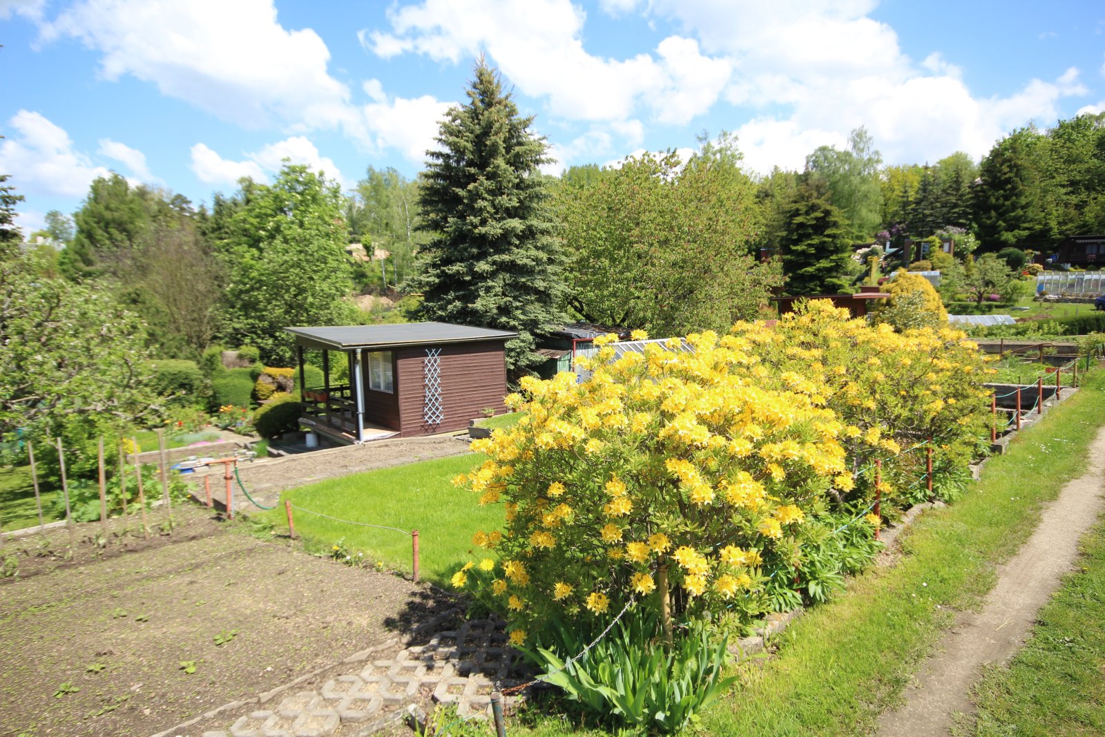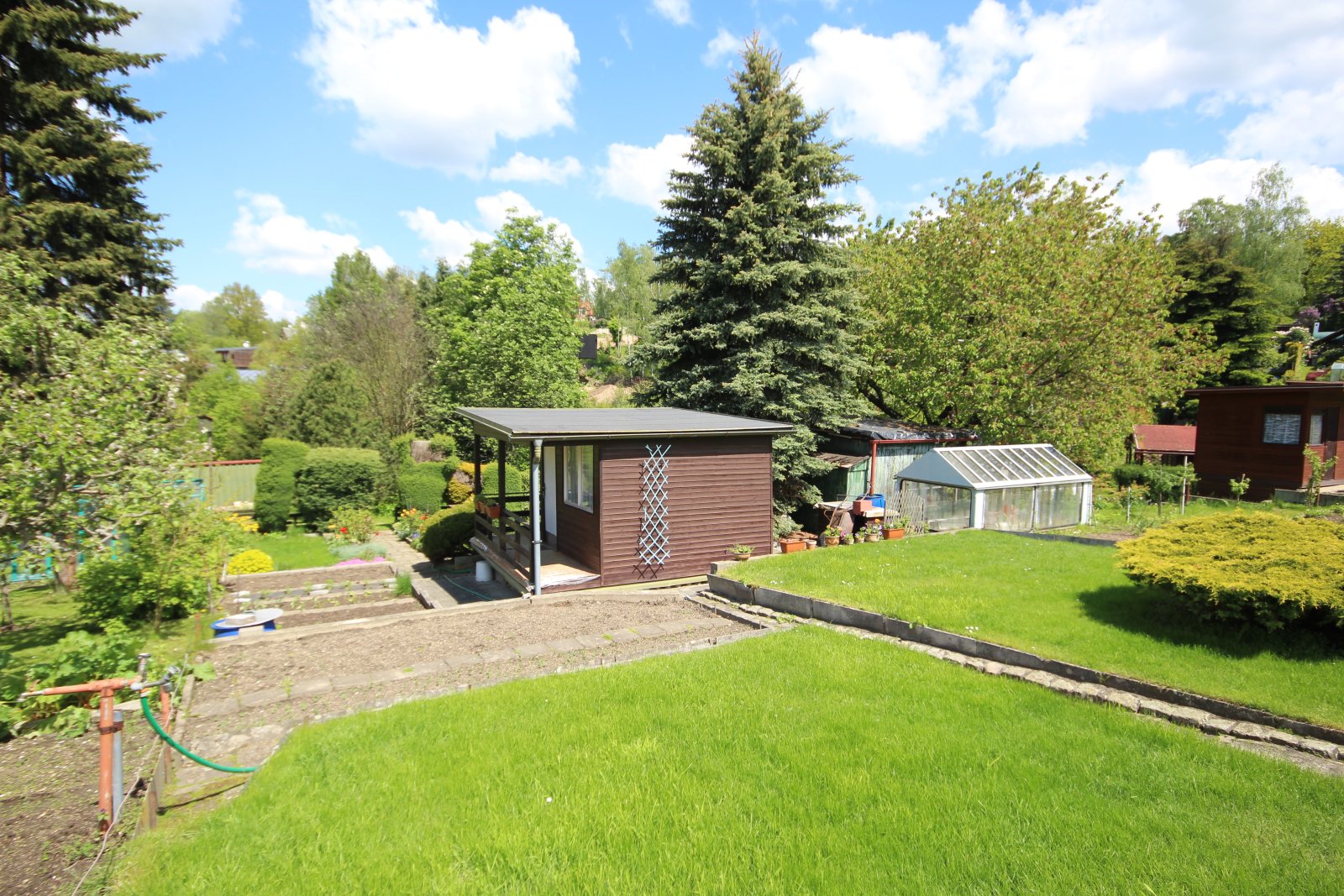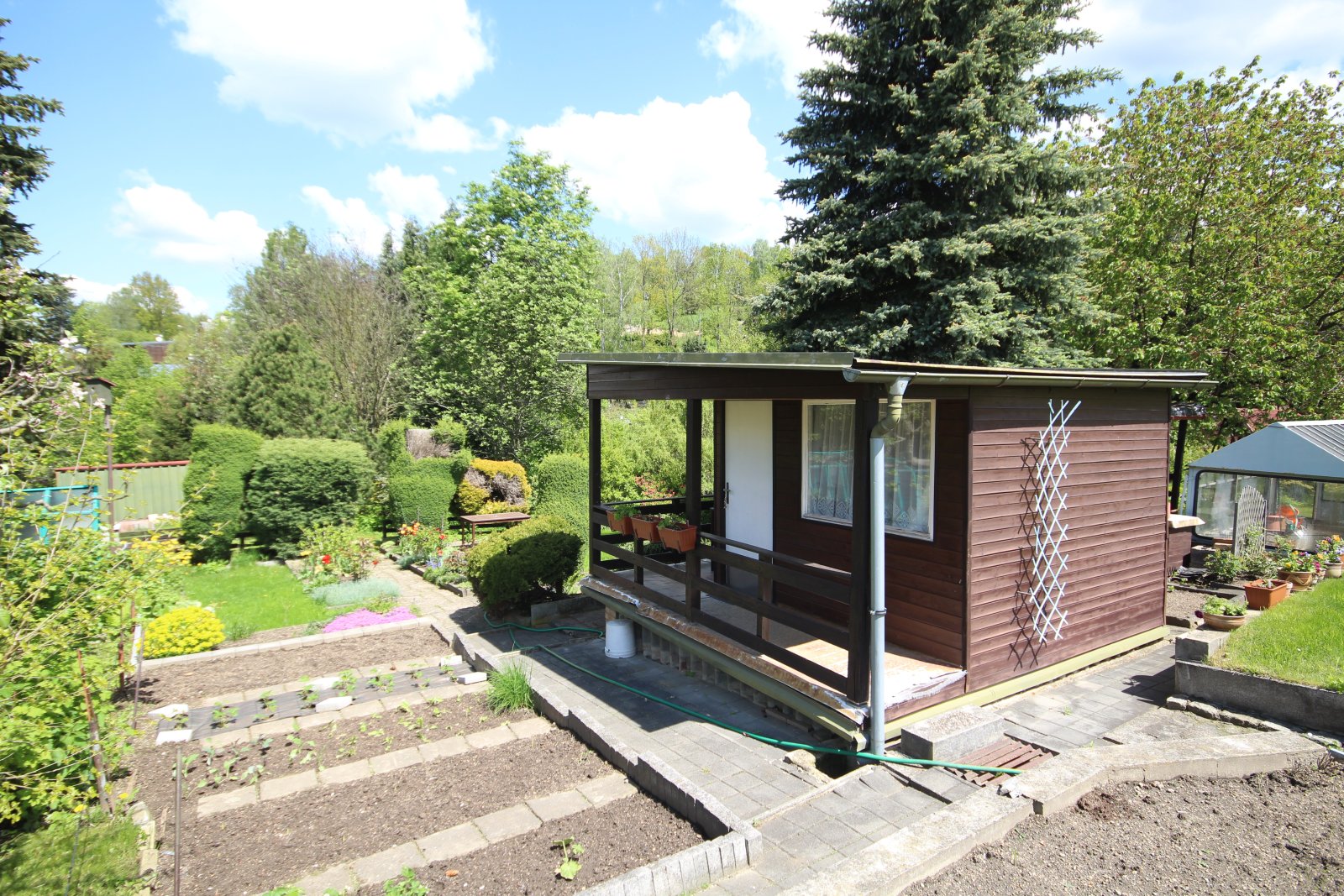 Prodej chaty s pozemkem v Liberci, ul. Horská. Jedná se o prodej starší chaty se zahradou, která se nachází v zahrádkářské kolonii umístěné pod křižovatkou ulic Kolmá a Horská (kú Ruprechtice). Pozemek je lehce svažitý a nachází se v centrální části kolonie. Je udržovaný a stojí na něm stavba dřevěné zahradní chaty, do které je zaveden elektrický proud. Chata je starší, ale plně funkční. Kolonie je kompletně oplocena, možnost parkování přímo před vstupem. Na pozemku je kohout s užitkovou vodu, která je přivedena z nedalekého jezírka. Na zahradě jsou menší travnaté plochy, záhony pro pěstování zeleniny a květin. Místo je dobře dostupné autobusem MHD, když autobusová zastávka se nachází přímo nad kolonií. Výměra pozemku je 305 m2, pozemek i chatka jsou v osobním vlastnictví. Velmi klidné a přátelské místo ideální k rodinné rekreaci a odpočinku bez nutnosti dojíždění mimo město. K dispozici ihned.