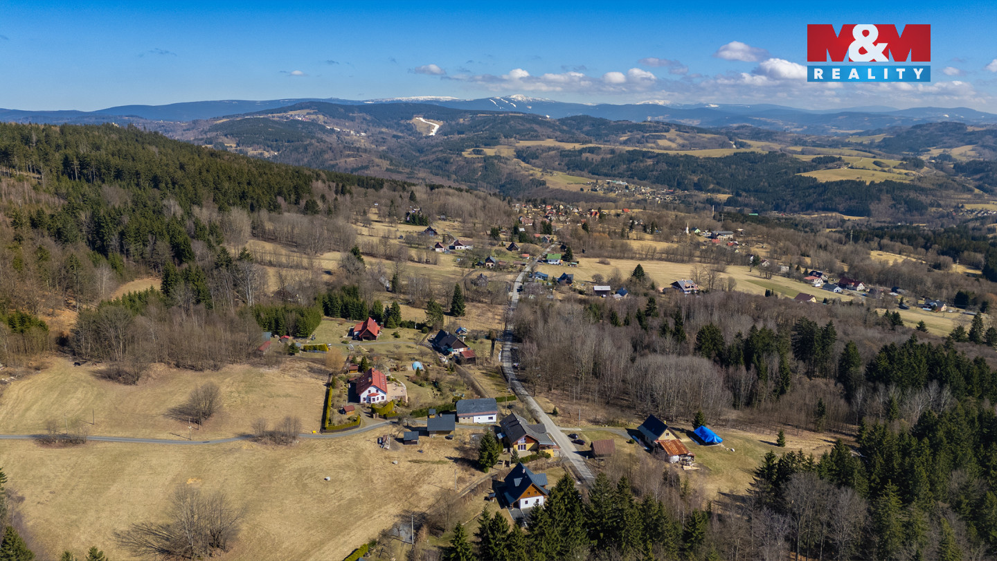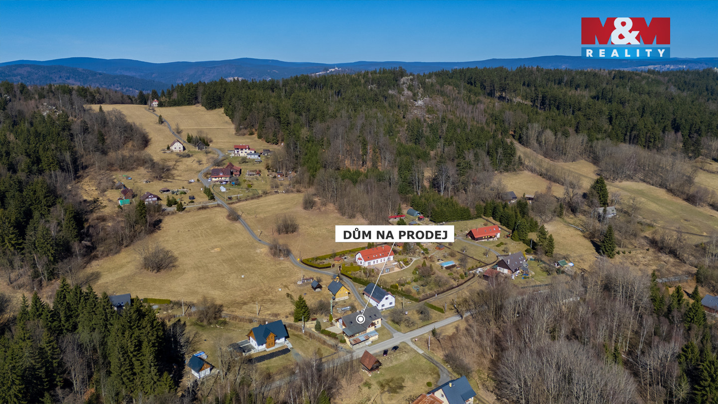 Nabízíme k prodeji prostorný rodinný dům ve Velkých Hamrech v malebném prostředí Jizerských hor, ideální pro klidné bydlení i rekreaci. Dům o užitné ploše cca 368 m2 nabízí dostatek prostoru pro větší rodinu nebo vícegenerační soužití. V podkroví se nachází sedm pokojů vhodných jako ložnice, dětské pokoje či pracovny, k dispozici jsou také koupelny se sprchami a toaletami. V přízemí naleznete prostornou jídelnu, plně vybavenou kuchyň, obývací pokoj s krbem a potřebné zázemí. Součástí domu je i herna a vyhřívaný bazén na zahradě. Vytápění zajišťuje ústřední topení, elektrické přímotopy a krb s rozvodem tepla, ohřev vody bojlery. K domu náleží pozemky s možností dalšího využití. Lokalita nabízí výbornou dostupnost lyžařských areálů i turistických tras. Nemovitost je vhodná jak pro trvalé bydlení, tak i jako investice k rekreačnímu pronájmu.
